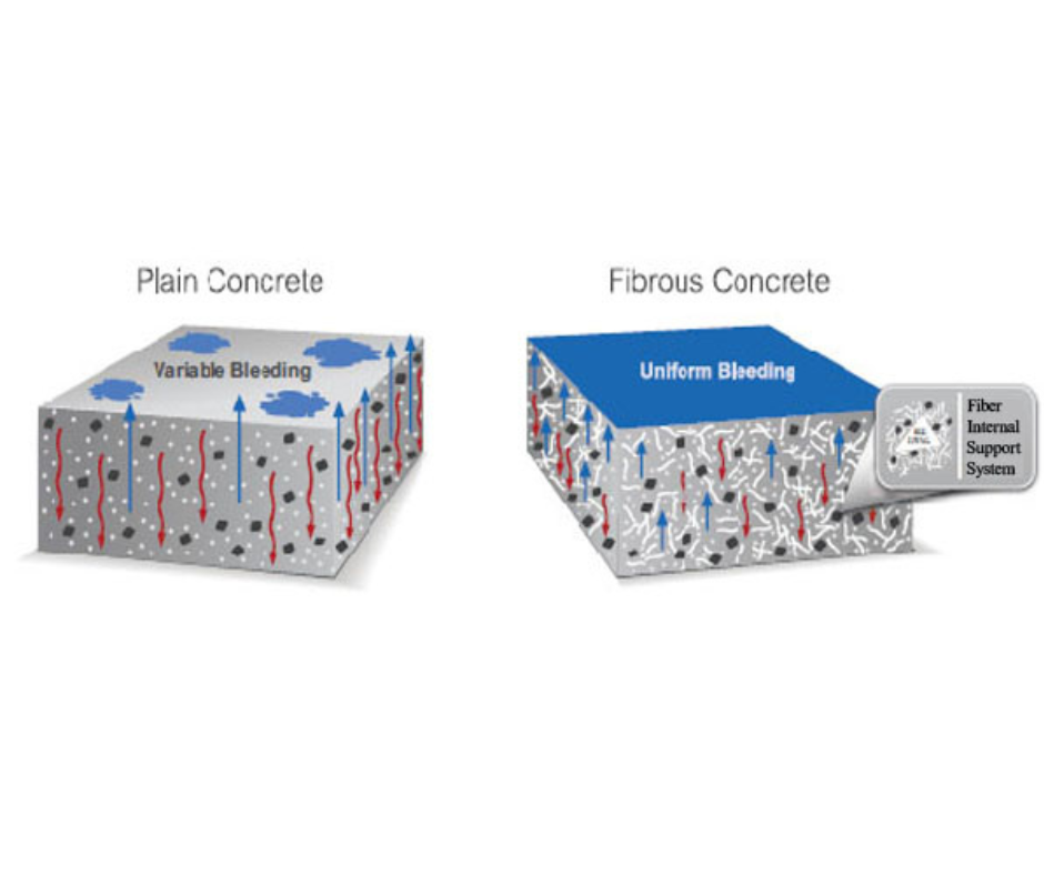 It also lowers water migration in concrete by enabling the concrete to progress from plastic to a hardened state with greater integrity and hence it helps to increase the water-resistance of hardened concrete. As the millions of DURO-CRETE fibers distributed uniformly throughout concrete are equally elastic in all directions, impact and shatter forces are easily resisted. The fibers help absorb the shock of the force, as well as giving the concrete maximum integrity to withstand the force.
